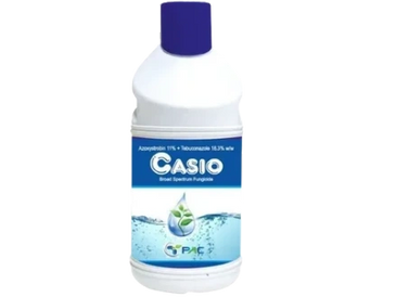 CASIO (Azoxystrobin 18.2% + Difenconazole 11.4%w/w SC) is a new generation combination fungicide containing Azoxystrobin 18.2% + Difenconazole 11.4 % w/w SC).Casio is a dual action systemic broad spectrum fungicide with protective and curative action. It offers only disease control but also improve crop health quality and yield of a